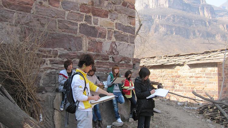 2011年3月28日,环境艺术专业2010级1-4班全体学生共125人由蔡利勤、李甲、董喆、张莹老师带领,在河南省石板岩乡太行山峡谷春天写生基地进行了为期十天的建筑速写训练。