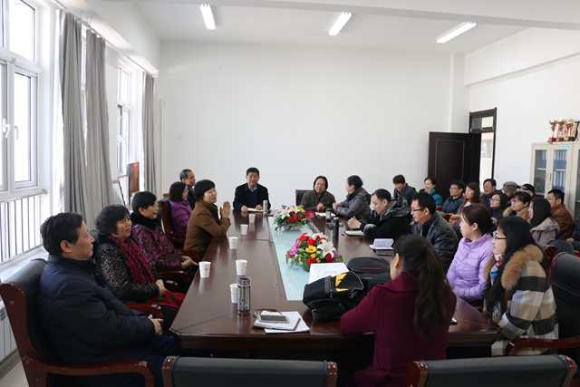 2月24日,新学期伊始,在博雅楼B501会议室,艺术学院召开全体教职工会议,校党委书记郭翠芬,院长范素华,副书记宿建沛,副院长王淑霞、贺兴利、刘正林等校领导和有关部门负责人到艺术学院看望教职工,参加教职工会,指导新学期工作。