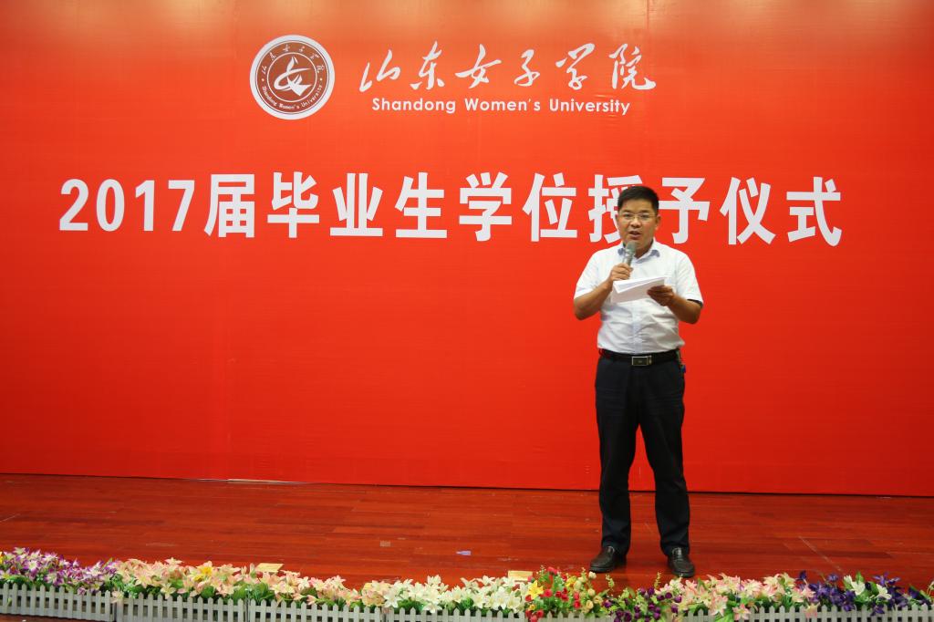 党总支书记王仕忠主持了2017届毕业生学位授予仪式。他代表艺术学院1090名师生向范校长表示崇高的敬意和衷心的感谢,向授予艺术学院117名学士学位的本科毕业生表示热烈的祝贺!祝贺同学们入校以来,秉持“坤德、含宏、至善、尚美”的校训,互帮互助、共同进步,实现了德智体美协调发展。同学们在校学习期间,正是学校建设发展的关键四年,也是范校长联系艺术学院的四年,四年里,艺术学院在范校长的关心指导下,新上本科专业3个,引进人才12名,新增教学仪器设备200多万元,动员教师指导学生发表论文78篇,申报专利32项,获批18项等,各项工作都取得了快速发展。同学们更是积极进取、乐观向上,在专业学习、实习实训和服务社会等方面取得了优良的成绩,表现了新一代女院学子的良好风貌。特别是在迎评促建的工作中,同学们发扬爱校荣校的优良传统,以文明守纪、奋发努力、主动作为的良好姿态,积极承担各项任务,展示了主人翁的意识和责任感,为学校迎评工作增添了光彩。同学们每一步成长,都是每位老师所有努力的最终目的,也是学院改革发展的不竭动力。同学们四年的学思践悟,相信“坤德、含宏、至善、尚美”的校训已经内化于心、外化于行,相信同学们走向社会后会继续坚守,指导我们走好今后的人生路。他寄语同学们,作为整装待发的新一代女院人,我们既要传承优良传统,还要担当新时代的责任,争做践行校训的榜样,勇敢的担负起实现“中国梦”的的历史使命,决不能辜负了自己、辜负了这个伟大的时代。记得2013年7月,习总书记到中科院考察时说:“我们处于一个伟大的时代,有着伟大的目标,可谓‘生逢其时、责任重大’。”在这个伟大的时代,每个人都注定不平凡。我们要感谢这个伟大的时代,抓住每一个机会发展自己,努力做自己的英雄,做时代的英雄,要认真对待自己所肩负的历史责任和神圣使命,不可妄自菲薄,也不可自我膨胀,不可随波逐流,也不可固步自封,要主动把自己的梦想融入社会发展进步的洪流,勇敢地到基层和人民中去建功立业。在实现中华民族伟大复兴“中国梦”的历史进程中,设计精彩人生、激扬艺术梦想!他寄语同学们:一要坚持修德,激扬正气。国无德不兴,人无德不立。我们要正视优秀传统文化的时代价值,如天下兴亡、匹夫有责的担当意识,精忠报国、振兴中华的爱国情怀,崇德向善、见贤思齐的社会风尚,孝悌忠信、礼义廉耻的荣辱观念,在践行和传承优秀传统文化中,学会做人做事的道理,勇敢与不文明不道德的行为作斗争,身体力行传播正能量。我们不仅要明大德、守公德、严私德,干一行爱一行精一行,用实实在在的业绩回报社会、回报母校。二要坚持笃学,晖光日新。我们要坚持终身学习,活到老学到老。除了继续求学深造的同学,你们中的大部分可能都要离开校园,投入紧张的工作和琐碎的生活,但要小心别让它们成为不读书不学习的借口。信息社会是学习型社会,任何人不学习就要落伍,就要被淘汰。我们要坚持利用一切可以利用的时间读书学习,博览群书、深入思考、科学借鉴,不只是为了提高知识水平和专业技能,最重要的是可以让我们学会做个审慎并清醒的人。三要坚持求是,坚守信仰。“路漫漫其修远兮,吾将上下而求索”。6月15日,范院长专门抽时间到艺术学院,同学们都穿上学士服与范校长合了影,但同学们是否思考穿学士服的真正意义?在欧洲中世纪,可以穿袍子的人只有三种:教士、法官和学者,代表着对真理的一种信仰,没有信仰的人就不配穿袍子。作为新时代的大学生,要经常进行意义的反思,时常问一下自己的初心是什么、目标是什么、梦想是什么,才能不忘初心、不违本心,才能守住底线、方得始终。今天走出校门,当毕业10年20年或更长时间之后再回母校,希望大家还能保持这份纯真、激情和执着,“愿你走出半生,归来仍是少年”。四要坚持创新,突破自我。创新是民族进步的灵魂,是一个国家兴旺发达的不竭源泉。2014年9月李克强总理在达沃斯论坛上提出“大众创业、万众创新”以来,全国掀起创新创业浪潮。创新需要激情,但不能浮躁。我们既要仰望星空,更要脚踏实地,要记得画饼充不了饥,望梅止不了渴。人生没有彩排,每天都是现场直播。我们要勇敢地大声说“世界那么大,我要去闯闯”,不要等到双鬓斑白时空叹“时间都去哪儿了”。勇敢地去创造属于自己的美好未来和幸福生活。创新创业路上,请同学们不要忘记,母校永远是大家的精神家园,母校的大门永远为你们敞开,希望大家常回家看看。