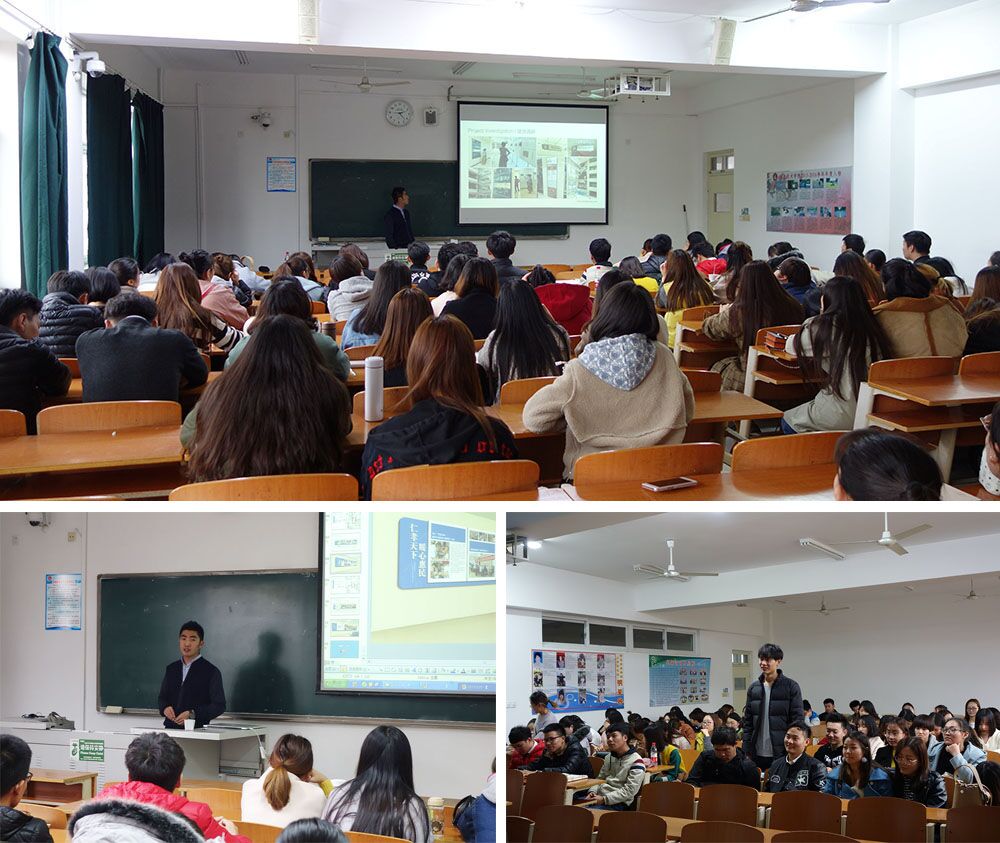 余以翚先生从事品牌设计创意及品牌管理工作多年,有着丰富的专业实践、管理经验。本次讲座内容主要包括集团业务介绍以及两个品牌设计案例解析三个部分。余先生以平实、幽默的语言,详细讲解了一个品牌业务从调研分析、讨论定位、创意设计提案到设计制作的操作过程。通过本次讲座使学生深切体会到一个专业实战操作成功的不易,作为一名设计师,不但需要有基本设计能力,还需要跨界知识,更需要有不断学习的能力,敬业的精神,精益求精的态度。本次讲座后,学生与余以翚先生就如何提高专业实操能力,如何进入专业公司就业等问题进行了轻松、热烈的互动。本次讲座为学生提高专业认识,进入社会实践进行了一次思想上的洗礼,使学生更加明确了专业学习的方向。