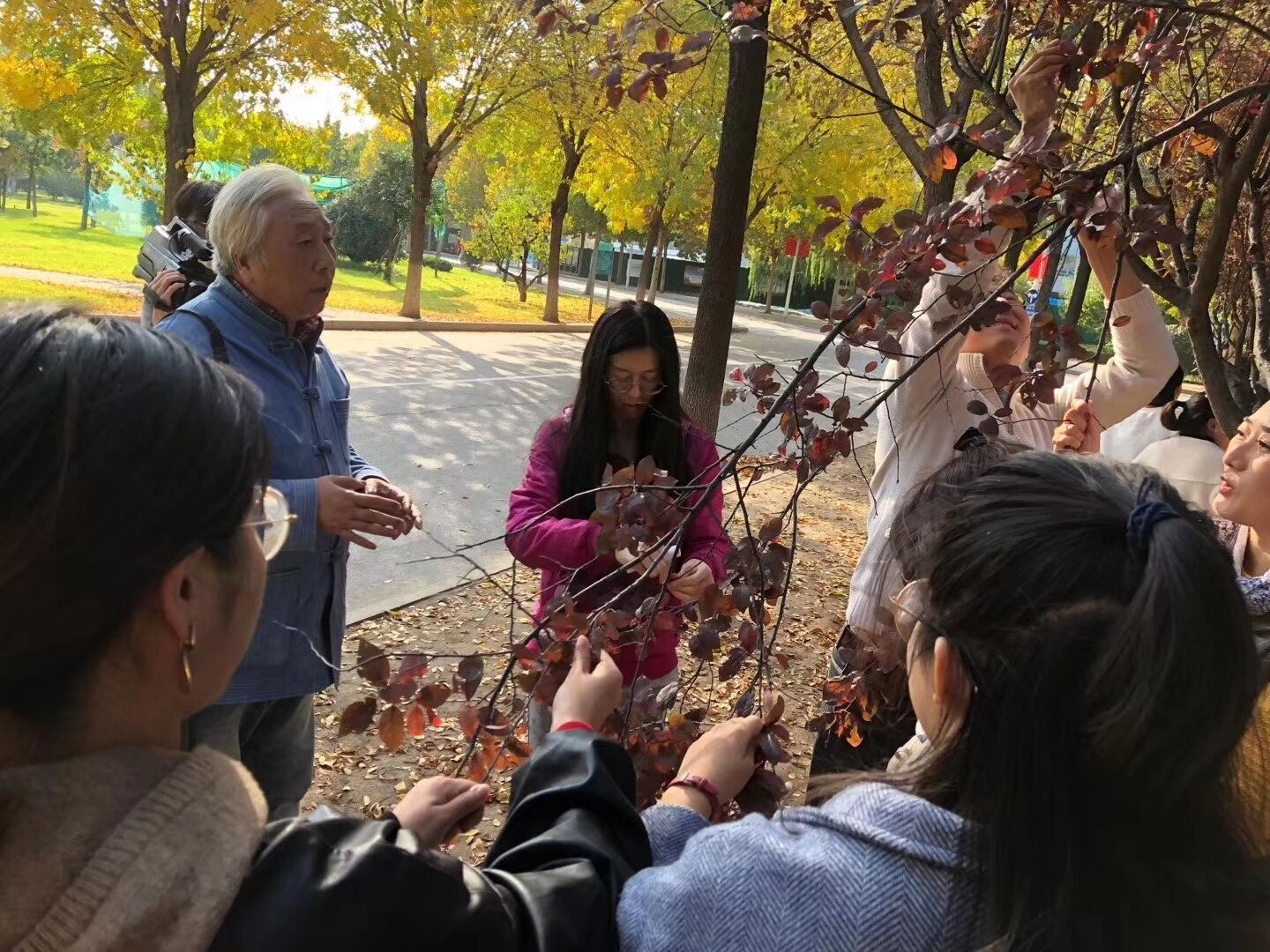活动期间,黄荣华教授代领师生在校园采摘植物的枝叶果实,经过加工提炼出植物原液,进行了传统染色。参加活动的师生对于利用我们校园的植物染色的成果惊叹不已,也感叹中国匠人的伟大智慧。