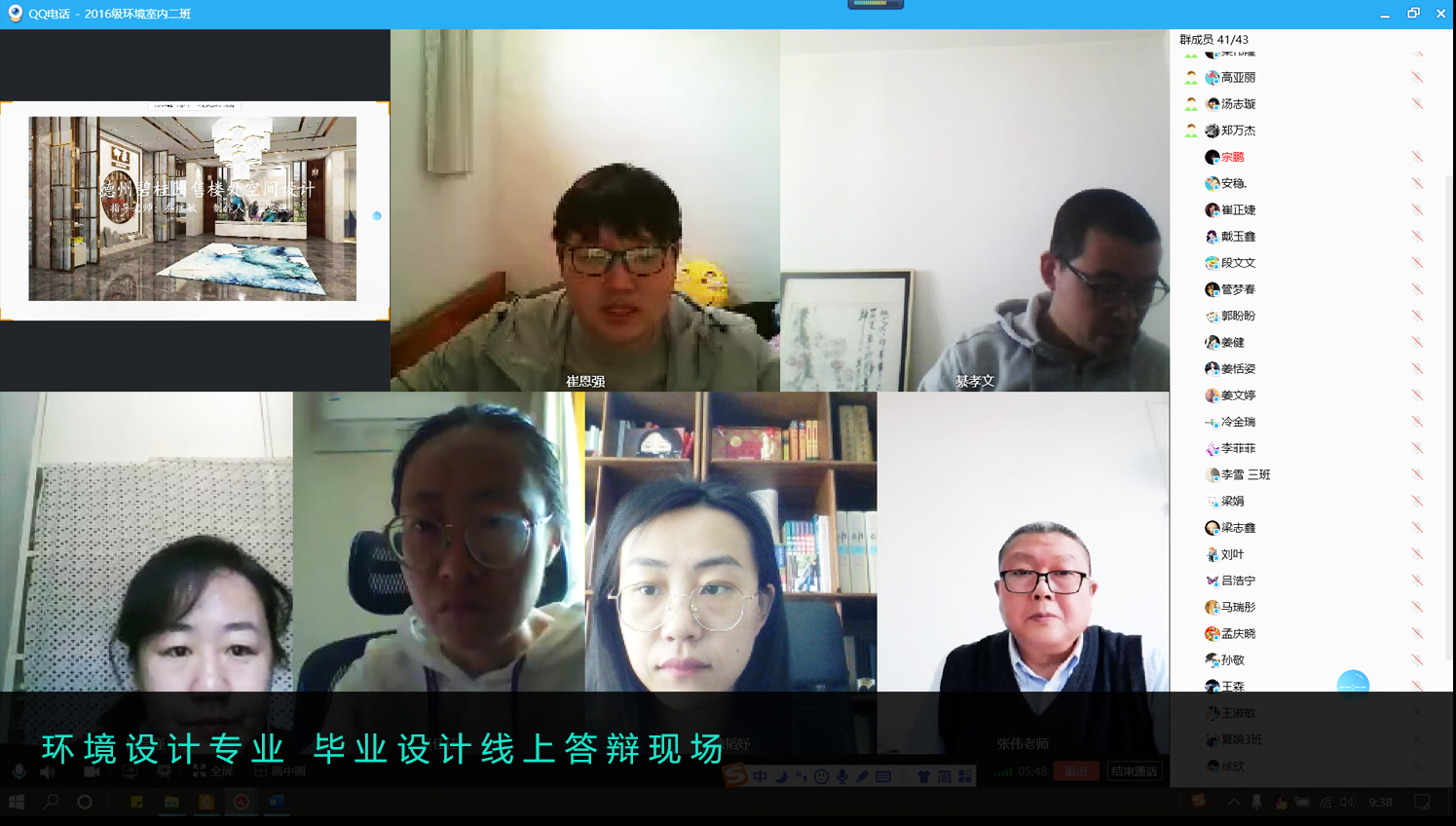 在答辩过程中,答辩秘书主持答辩流程、答辩记录员完成同步记录和录屏存档,确保线上答辩质量和答辩流程的规范,学生毕业设计注重对地域需求和社会现象的关注、传统文化传承、创新生活方式构想,注重艺术、人文与科技的交叉融合,选题具有实验性、前瞻性和服务地域经济的特征,体现学院多年注重人才培养的不懈坚持,全院2020届学生顺利完成毕业设计答辩。