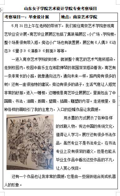 2.组织学生通过撰写考察日志,了解分析国内一流艺术院校的毕业设计作品的特点以及不同历史时期、不同地区、不同类型艺术风格点。