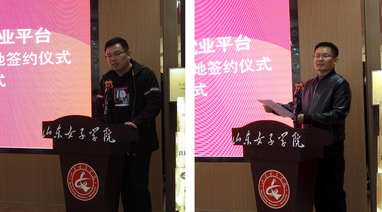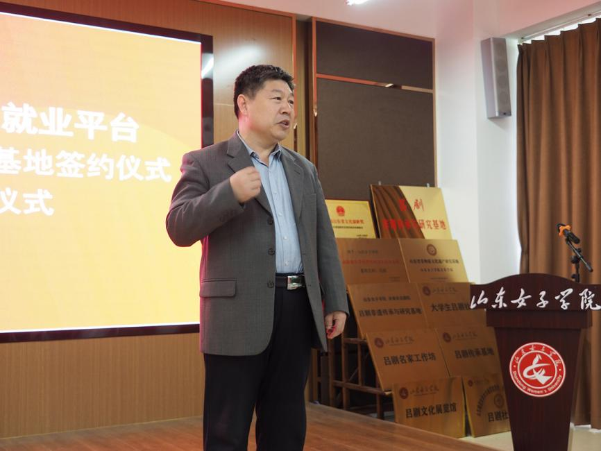 慧海文化创意(山东)有限公司董事长于涛讲话 学院副院长赵崇立主持仪式