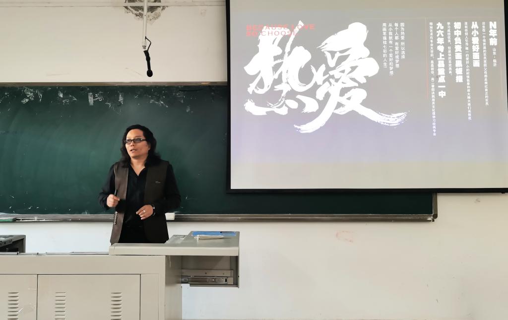 在讲座中,胡尊照先生依次从“设计师的自我成长”“创业者的自我蜕变”与“设计案例分析”三个模块进行讲述。在“设计师的自我成长”模块,他以“初心、热爱”为切入点分享了几十年来从事设计领域工作的心得;在“创业者的自我蜕变”环节,他强调“创业是设计师横向成长”“要与客户进行充分沟通,要解决客户所需”;在“设计案例分析”环节中,他提出要重视“为客户解决问题”,勉励同学们以努力专注的态度去不断学习成长。