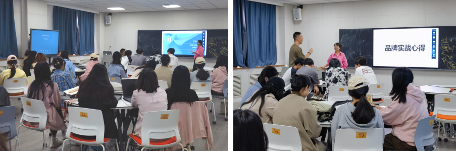 课堂上,学生们积极参与互动,提出问题,教学活动现场热烈,效果显著。通过行业导师进课堂开展教学,学生们不仅学习到了最接地气的品牌设计理念,还对如何将所学知识应用到实际工作中有了更深刻的理解,极大地激发了学生的学习热情,增强了他们的职业意识和创新能力。此次活动不仅是校企双方共同努力的成果,也是艺术设计学院深化教学改革、培养高质量应用型人才的重要举措。