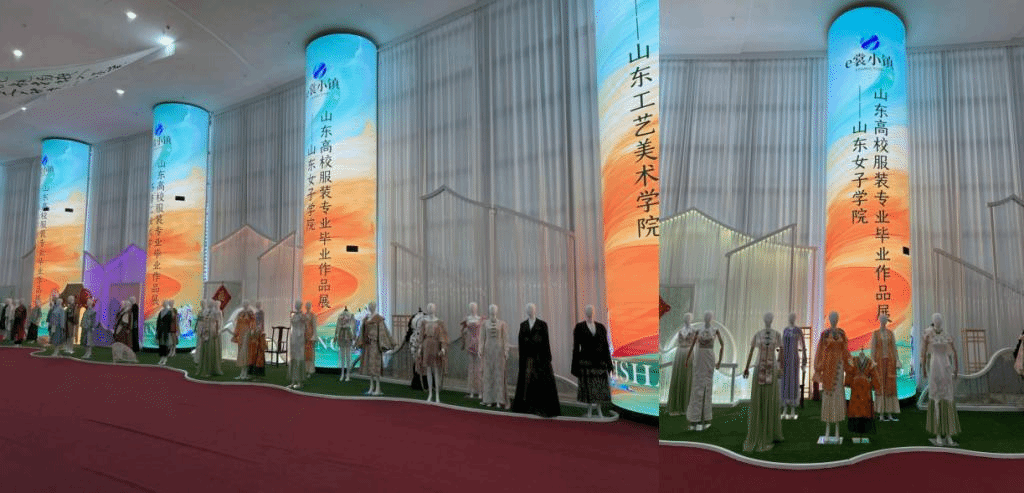9日,学院师生首先参观了在菏泽曹县e裳小镇展示的20余套2024届艺术设计学院服装与服饰设计专业毕业生的毕业设计作品。本次受邀展示的毕业设计作品包含女装设计、童装设计等多个品类。展现了学院服装与服饰设计专业在传统服饰设计特色方向开展的优秀教学成果,也进一步体现了专业围绕学校办学特色定位及地服务方经济发展需要,凝练专业特色发展的办学理念。