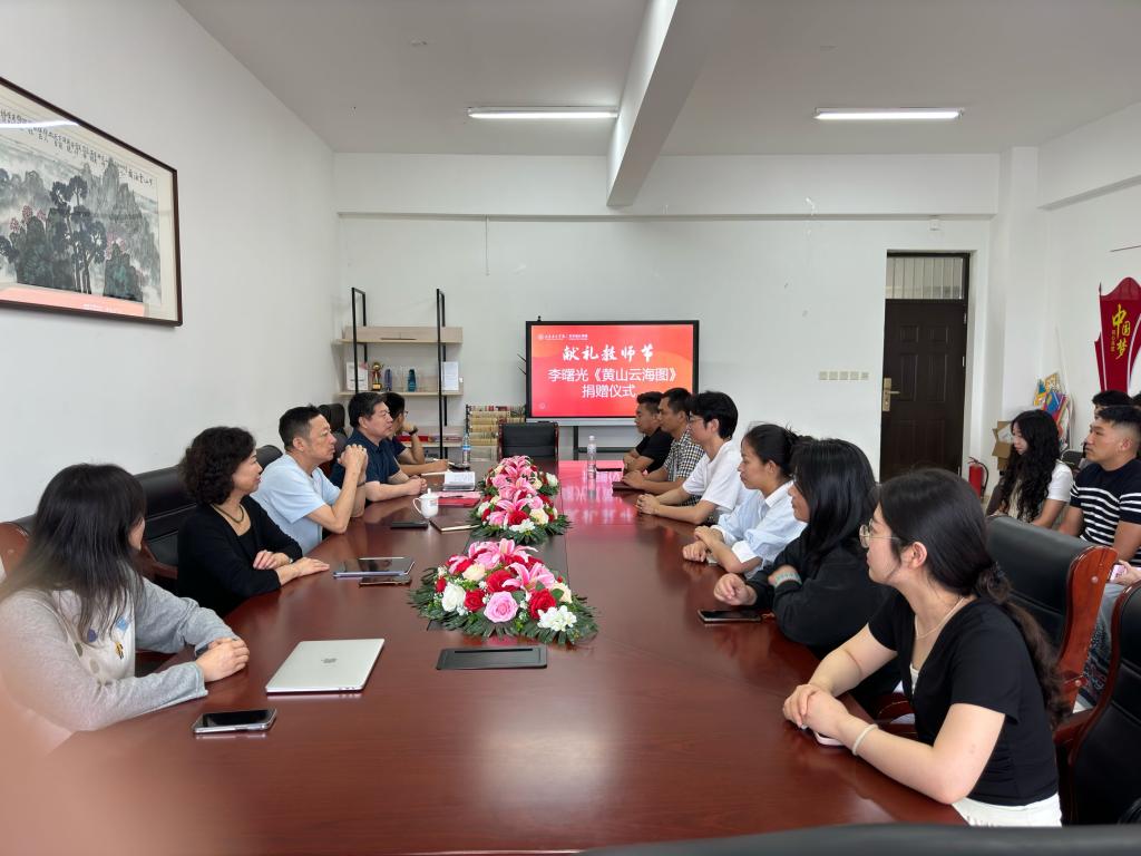 9月12日下午,一场特别的捐赠仪式在艺术设计学院303会议室隆重举行。学院退休老教师李曙光教授向学院捐赠《黄山云海图》绘画作品1件,向第40个教师节献礼。艺术设计学院领导班子、学院各教研室主任及专业负责人、以及学院部分师生代表出席此次捐赠仪式。