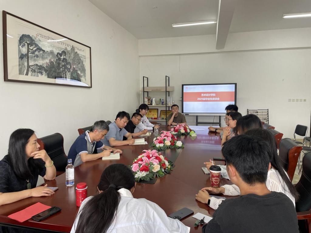 6月25日下午,艺术设计学院在求真楼303会议室召开2025届毕业生座谈会。学院党委书记颜涛、党委副书记叶小华、副院长赵崇立出席座谈会,与教师代表及2025届毕业生代表齐聚一堂,共同回顾大学时光,交流成长感悟,为学院发展建言献策。