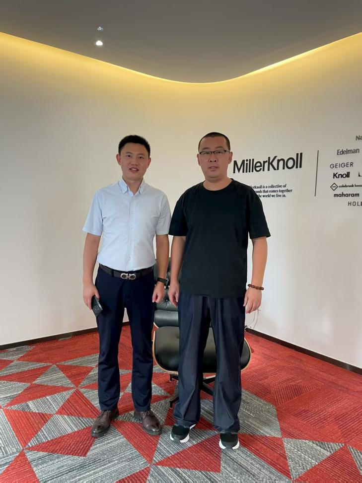 随后,綦孝文、陈金瑾来到山东合创家具有限公司。合创家具是专业的办公空间服务机构,集办公家具生产和销售、空间设计、装修、软装设计等空间配套服务为一体。在交流座谈会上,公司相关负责人黎明分享了家具行业的发展趋势,以及对环境设计专业人才在家具设计、空间规划等方面的专业需求。双方还探讨了如何通过校企合作,将企业实际项目引入教学环节,让学生在实践中提升专业技能。