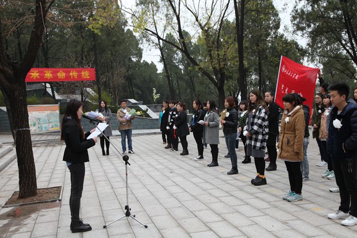 我院学生统一佩戴白花来到长清区烈士陵园。陵园的工作人员为大家讲述了烈士们的革命奉献精神和英勇事迹,同学们怀着悲痛的心情在烈士碑前默哀,为烈士敬献花束。学生代表翁枫婷发言讲话,鼓励大家珍惜今天来之不易的幸福生活,勤奋学习,遵纪守法,为将来奉献社会积蓄力量。齐春红同学带领在场同学庄重起誓,将捍卫法律,勤勉奋发,不负人民厚望。