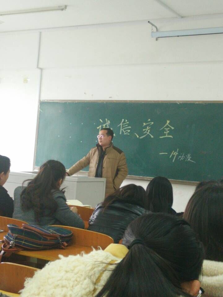 为切实增强学生的安全防范意识和避险能力,保障学生安全,同时教育学生诚信考试,拒绝作弊,14级动漫设计与制作专业于2015年1月14日下午在普教楼410举行了诚信、安全主题班会。班会以诚信考试、学校安全教育为主题,对学生进行了思想教育。班会由班主任温静老师主持,带班处级领导后勤处于学江处长、保卫处武凯处长也参加了此次班会。