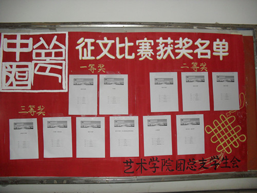 4月15日至26日,艺术学院团总支、学生会举办了 “我的中国梦”征文比赛,并在一号教学楼五楼大厅展出了征文比赛优秀作品。