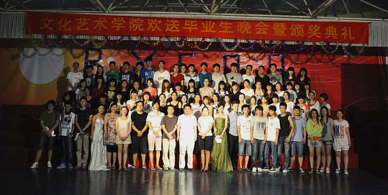 6月20日,文化艺术学院在合班楼508举行欢送毕业生晚会暨颁奖典礼。学校党委副书记宿建沛,学生工作处处长李君,文化艺术学院党总支副书记、副院长王仕忠,部分兄弟学院团总支书记、辅导员,文化艺术学院部分老师和辅导员出席,09级毕业生和10级、11级部分同学们参加了晚会。