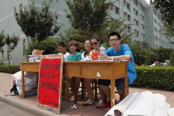 自我院的《致2011届毕业生倡议书》发出后,6月28日及29日,文化艺术学院在学校餐厅对面设置捐赠处,倡导毕业生们奉献一份爱心,温暖一个心灵,将自己不便带走的衣物、书籍等学习生活用品捐赠出来,送给最需要的同学。