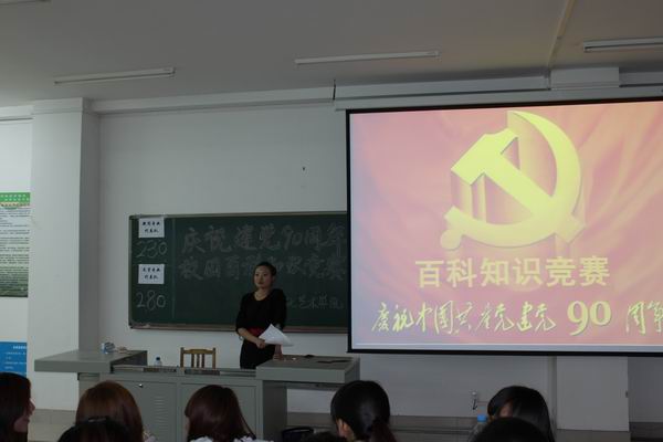 5月26日下午2点,文化艺术学院“庆祝建党90周年”校园百科知识竞赛在合班楼108如期举行。文化艺术学院王书记、辅导员老师及10级部分同学观看了此次比赛。