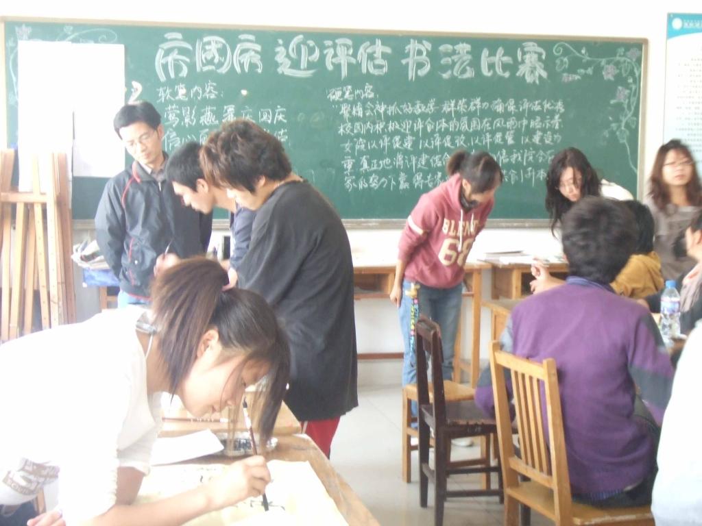 2009年10月22日下午两点,文化艺术学院团总支和学生会在普教楼502教室举行了书法比赛。