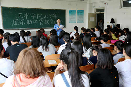 为尽快落实学生申请国家助学贷款工作,5月19日艺术学院召开2016年助学贷款宣讲会,会议由辅导员温静老师主持,我院申请助学贷款的学生参加了会议。