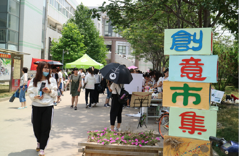 6月2日,由校团委主办、艺术学院团总支承办的“青春女院”系列活动----第一届“创意市集”在学校餐厅南举行。学校党委副书记宿建沛、中国教育报山东记者站副站长魏海政、山东教育报记者孙荣光、宣传部、团委、后勤处、艺术学院相关负责同志亲临现场,详细询问诸多同学的相关专业知识和创新思路,对此次活动形式及学生的创意作品给予指导,并带头购买创意作品,鼓舞同学们的创新创业热情。