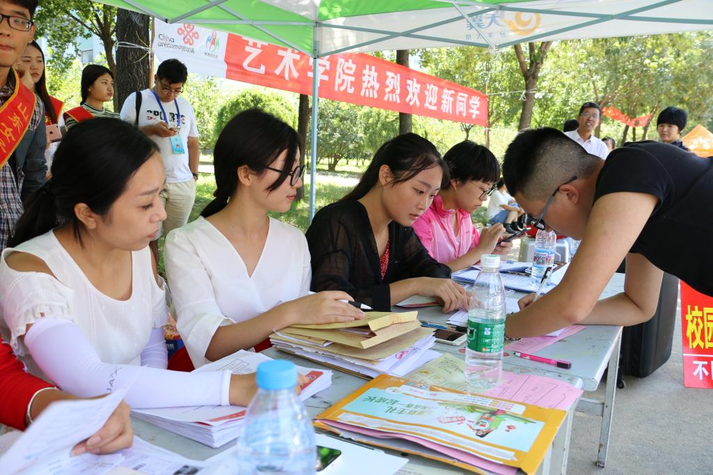 8月27日,艺术学院师生欢迎2016级新同学报到。艺术学院辅导员、班主任和各专业教师经过一天热情周到、紧张忙碌的工作,视觉传达设计、环境设计、服装与服饰设计、产品设计、数字媒体艺术,共五个本科专业235名新生,陆续完成了报到、注册、住宿等。
