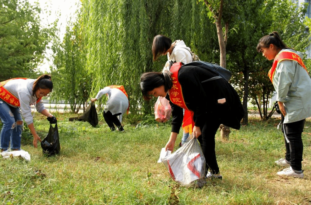 10月16日,艺术学院学生会组织各班志愿者开展“迎评促建,清洁校园”美化校园活动,在学校东环路卫生区捡拾垃圾、清洁卫生。