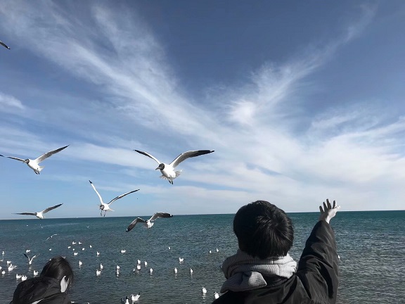 在青海湖畔眺望,苍翠的远山,合围环抱;碧澄的湖水。葱绿的草滩。周围是茫茫草原。湖滨地势开阔平坦,水源充足,气候比较温和,是水草丰美的天然牧场。夏秋季的大草原,绿菌如毯。金黄色的油菜,迎风飘香;牧民的帐篷,星罗棋布;成群的牛羊,飘动如云。日景色迷人,一起来蹦高,喂鱼鸥。追赶朝阳酷的可以装下全世界。