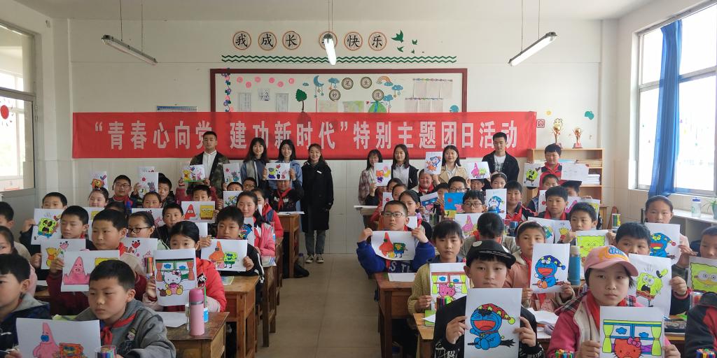 在“沂蒙精神”感召下,26日上午,李晨老师带领团员们前往沂南县青坨镇中心小学开展支教及墙绘志愿服务活动。该校曾遭受严重洪灾,后在共青团山东省委牵头筹资下重建,又名“沂南县共青希望小学”。支教小组成员为五年级十班的每位学生赠送了一套画笔,给大家上了一堂生动的美术课。墙绘小组成员分工合作,团员们充分发挥专业特长,为学校餐厅绘制了一组富于教育意义的图画,此次实践活动得到了青坨镇中心小学师生的高度赞扬。