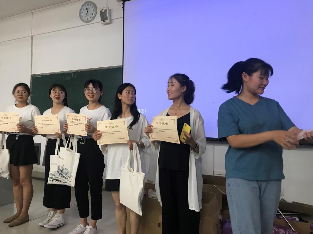 最后,举行了优秀宿舍奖品发放仪式,奖品有公牛插排、套扫组合、垃圾篓、垃圾袋、手提袋、T恤、笔记本等。此次奖品颁发既是对学生寝室卫生进步的认可和肯定,又是鞭策。学生高兴不已的说很实用,很开心,相信在同学们的共同努力下,定会将每个寝室建设成为一个干净整洁、温馨和谐的小家 。