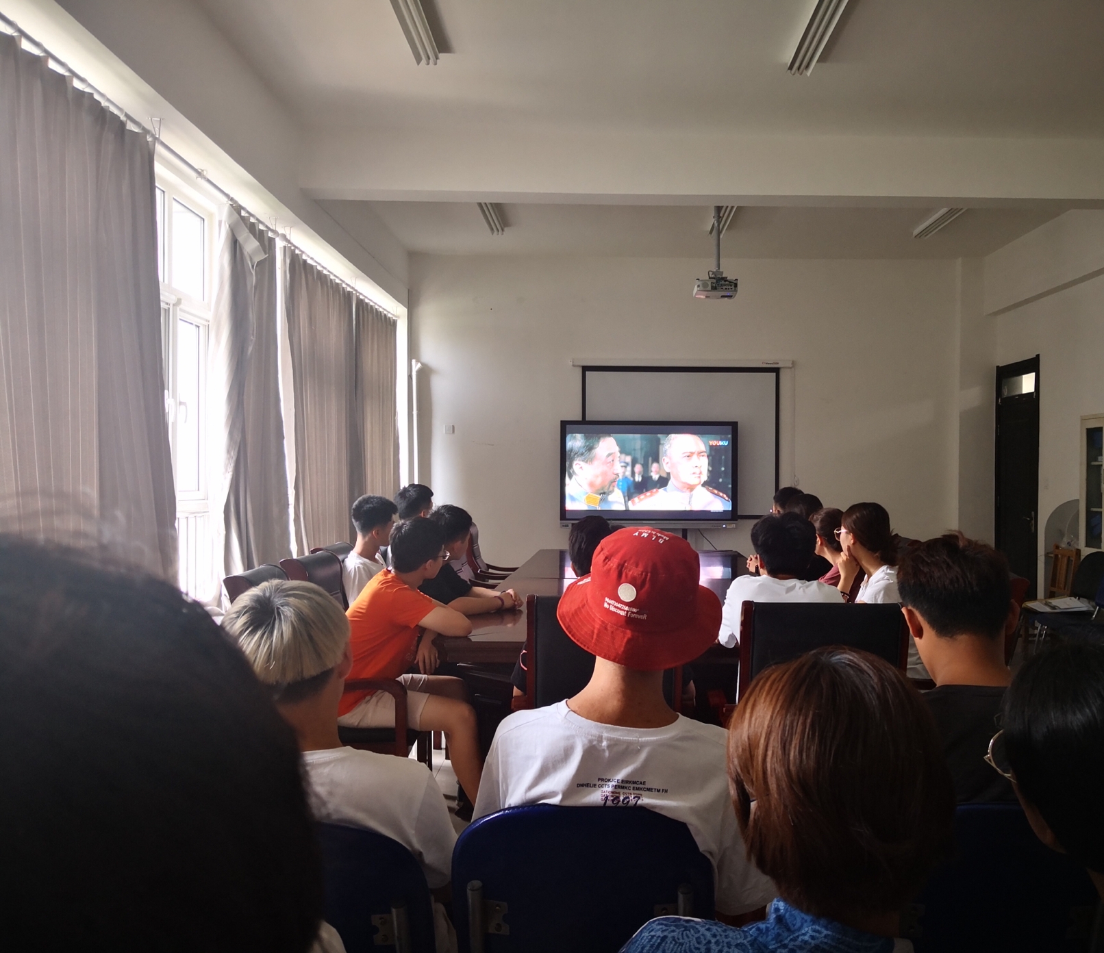 第二环节集体观看爱国影片《建党伟业》,通过重温革命历史,接受革命传统教育,引导广大团员青年认真回顾建党98年来中国共产党走过的光辉历程,充分感悟中国共产党98年来的奋斗历程,在波澜壮阔的革命历史中找到自己的坐标系,以此激励自己,寻找青春奉献祖国的不竭动力。