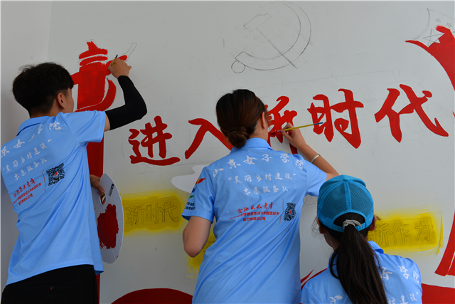 本次暑期三下乡社会实践活动,艺术设计学院“美丽乡村建设”志愿服务队立足乡村振兴,围绕艺术设计专业人才培养特色,深入乡村、社区、学校,通过爱心支教、绘制文化墙、调研民情、建立实习基地等形式的社会实践活动,引领广大青年“受教育、长才干、作贡献”,积极践行中华优秀传统文化的保护和传承,是打造帮扶村镇文化高地的一次有益尝试。对于新形势下落实我校“立德树人”根本任务,引导大学生增强“四个自信”特别是文化自信,培育和践行社会主义核心价值观,实现中华民族伟大复兴的中国梦,具有长远的战略意义和重要的时代价值。