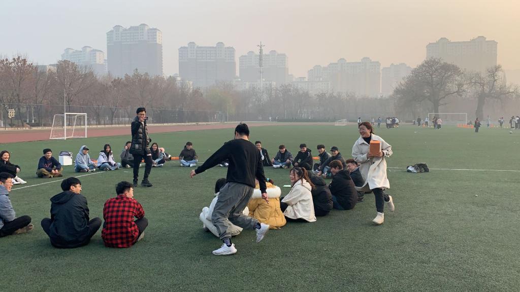 团支部书记刘彦玲介绍此次活动的几个游戏环节,紧接着组织委员王文哲组织同学们分队开始游戏,宣传委员于盛川为记录员。本次活动通过拍照、视频的方式来辅助游戏的顺利进行。希望同学们通过户外活动的方式“走下网络,走出宿舍,走向操场”,锻炼强健体魄,更好报效社会。