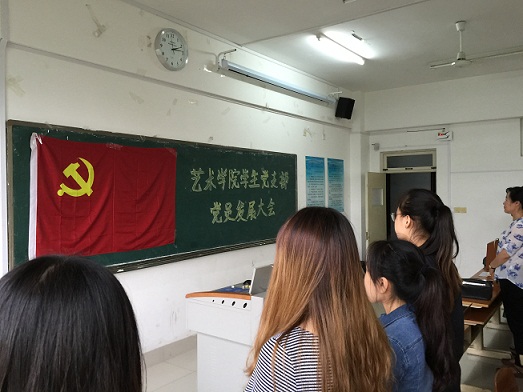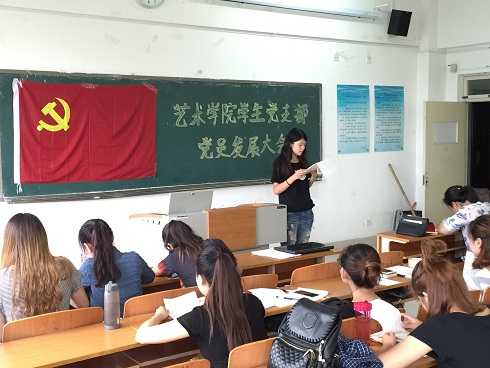 6月23日,艺术学院学生党支部在博文楼506召开2016年上半年党员发展大会。艺术学院学生党支部成员、教师党员、7名发展对象参加了会议。学生党支部书记许冰同志主持了会议。