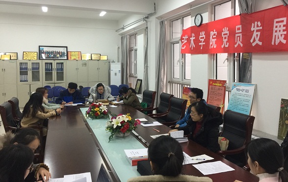 12月5日上午,艺术学院学生党支部在博雅楼501召开2016年下半年党员发展大会,讨论聂玉娟等八名同学的入党申请问题。艺术学院学生党支部全体党员、教师党员、八名发展对象参加了会议。学生党支部书记许冰同志主持了会议。