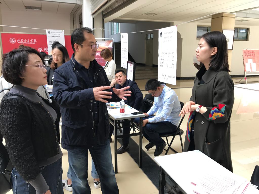 5月5日,艺术设计学院在博文楼一楼大厅举办了2018届毕业生专场招聘会。安莉芳(山东)服装有限公司、济南美人制造文化传媒有限公司、济南众行装饰工程设计有限公司等40多家单位为我院毕业生提供了300余个就业岗位,吸引学校众多毕业生前来参加。艺术设计学院党总支书记于学江、院长张利、招生就业处处长任晓剑亲临现场指导工作,各专业负责人、就业导师和辅导员、班主任现场指导学生应聘。