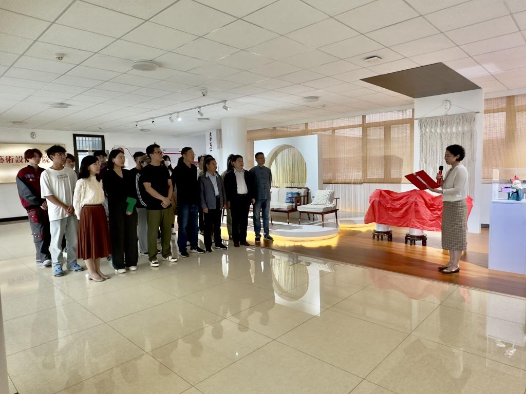 仪式最后,艺术设计学院党委书记董玉新为李曙光教授颁发捐赠证书,山东女子学院教务处处长穆勇、董玉新书记和李曙光教授共同为捐赠品揭幕并合影留念。