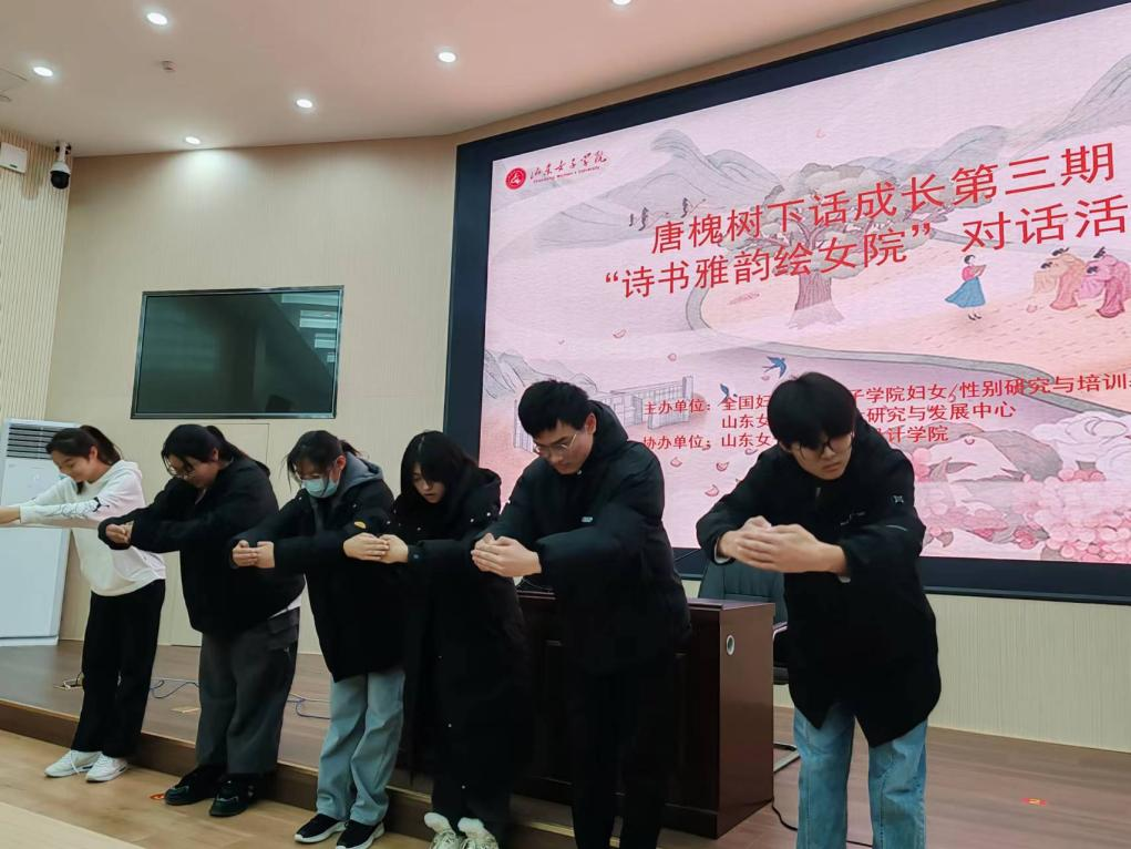 坚持以美育人、以文化人,提高学生审美和人文素养,坚持立德树人根本任务,健康向上丰富的校园文化活动对于提高学生的人文道德素养,拓宽学生的视野,培养跨世纪人才具有深远意义。妇女研究与发展中心联合艺术设计学院,于2023年11月25日下午举办了“唐槐树下话成长之诗书雅韵绘女院”对话活动,本次活动特别邀请山东工艺美术学院教授杜明星。活动由艺术设计学院赵月副院长主持,妇研中心林琳教授、艺术设计学院副教授王丽丽、艺术设计人物形象设计教研室主任卢婧妍老师和150多名学生参加了此次活动。