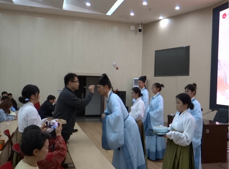 活动以“古代拜师礼展演”开场,通过“六礼束脩”的拜师仪式,为同学们呈现了中国人尊师重道的久远传统。仪式结束后6名同学现场进行了古代“拜师礼”的学习,同学们领悟了古代“拜师”仪式的深刻含义,注重品行修养,学师德,感师恩。