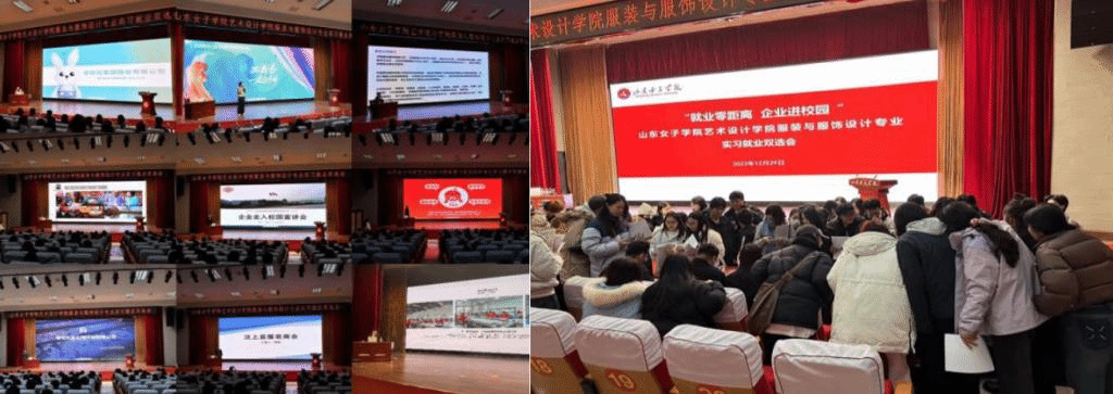 2023年11月29日,由艺术设计学院主办,服装与服饰设计专业承办的山东女子学院艺术设计学院服装与服饰设计专业实习就业双选会在图书馆二楼报告厅举行。