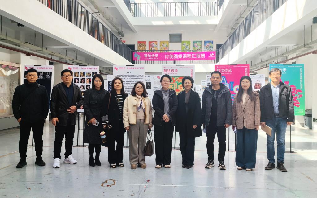 座谈会后,王晓峰院长陪同我院教师参观了视觉传达设计学院2022级《传统图案》“智绘传承——AIGC重构传统纹样”课程汇报展。