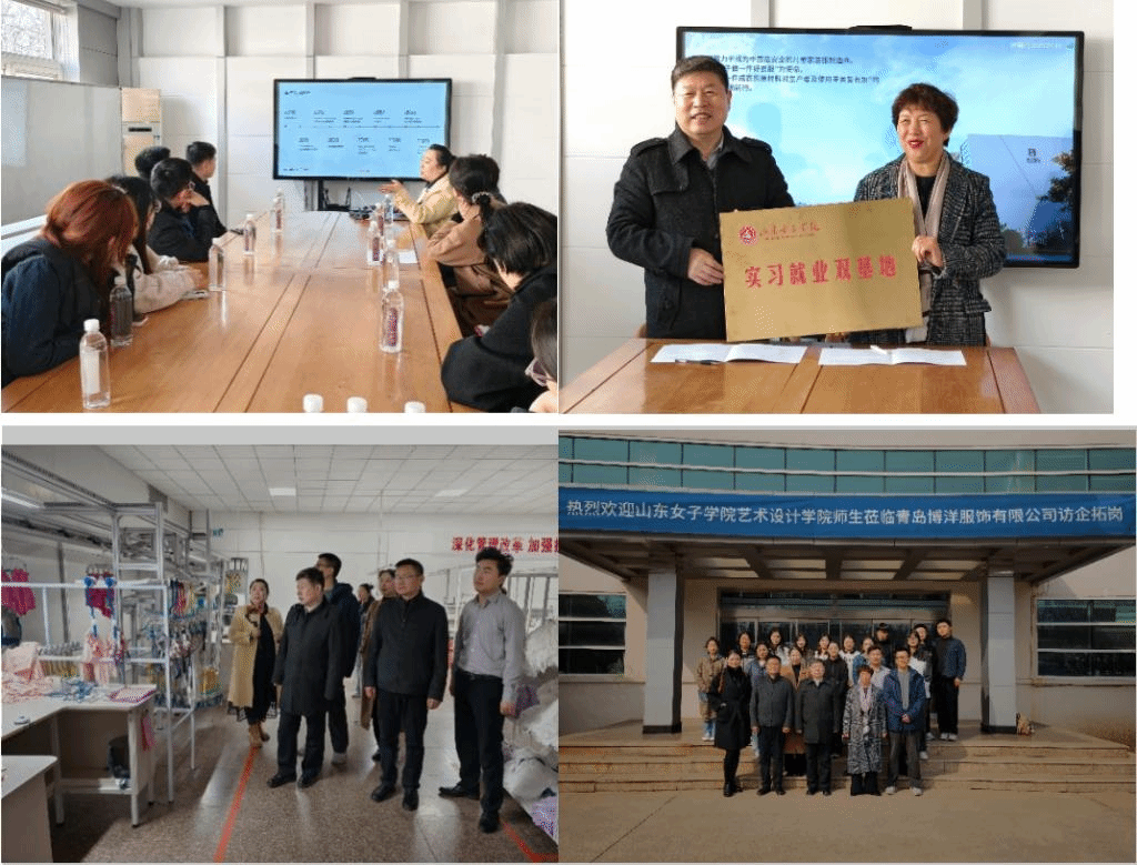 随后,师生一行来到了青岛博洋服饰有限公司。在设计总监孙逊带领下参观了企业的生产车间,实地察看了毕业生们的实习工作环境。在与企业负责人和毕业生们的交流中,还就如何进一步拓展校企合作、提高实习就业质量等方面双方都提出了宝贵的意见和建议。最后双方达成协议,签订实习就业双基地。