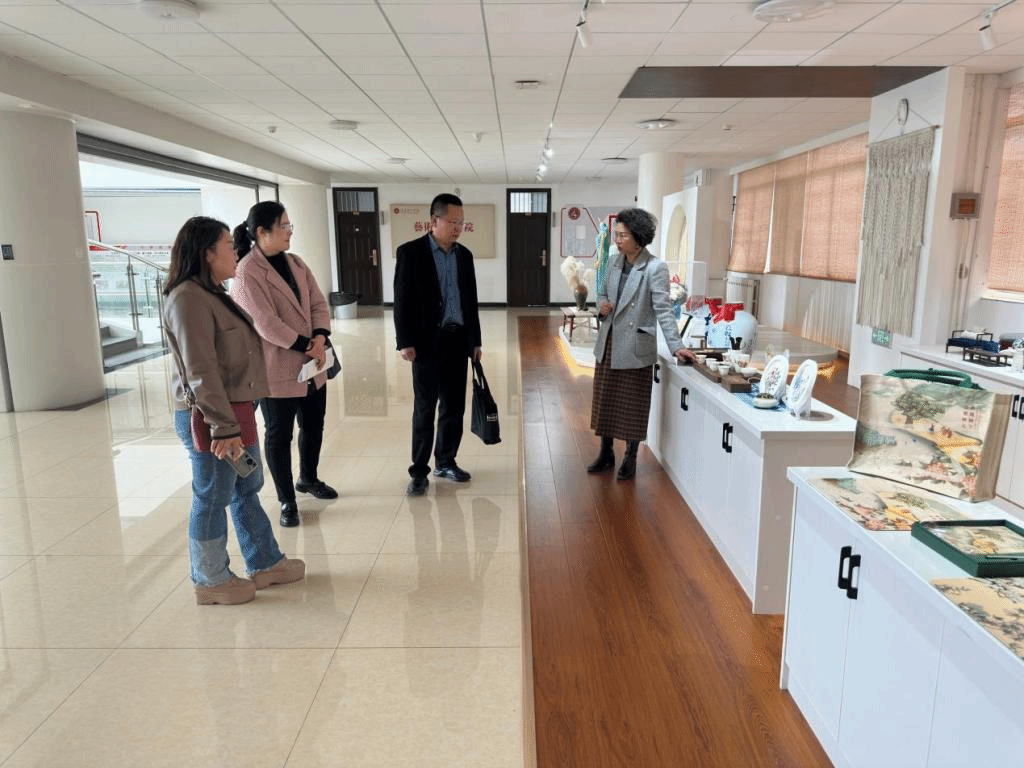 岳院长一行先走访考察了学院的纤维艺术工作室、植物染工作室、旗袍工作室以及明镜台古风设计工作室等,对我院在传承和弘扬中国传统文化方面所开展的工作表示了高度的赞赏和认可。座谈会上,赵月院长先就艺术设计学院的学科建设、人才培养等方面进行了介绍,王丽丽介绍了视觉传达设计专业的专业建设和发展近况,岳院长也讲到了临沂职业学院在艺术教育方面的深厚积淀和优秀实力,双方就校企合作、人才培养、育人模式等方面进行了深入地交流。